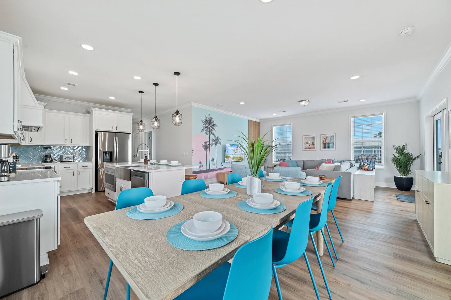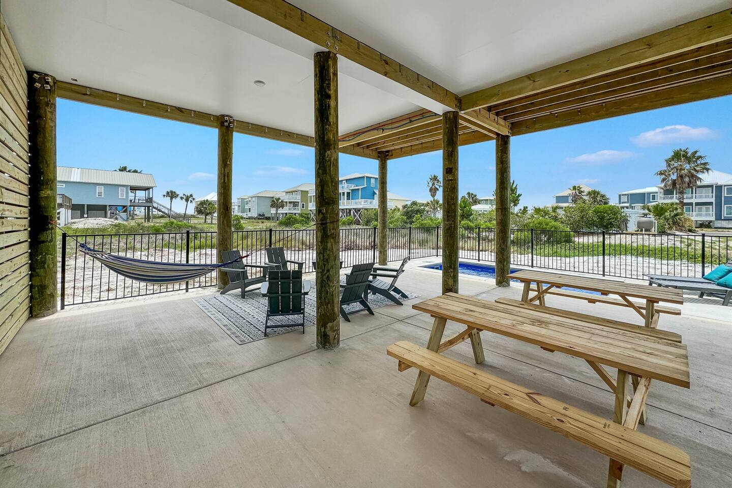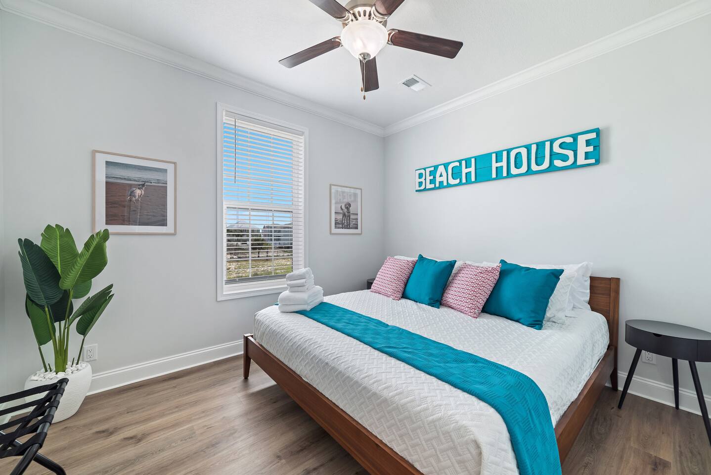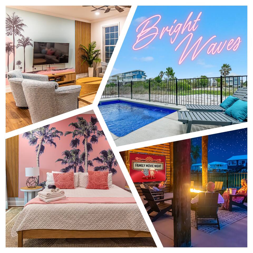 Picture yourself pulling up to Bright Waves Fort Morgan, greeted by the sight of a brand-new 4-bedroom beach house. The sky is painted in hues of orange and pink as the sun sets, and as you step inside, you're welcomed by cool, fresh air, luxurious furnishings, and the smell of the ocean breeze wafting from the nearby beach. After settling in, you head outside to your private heated pool. The water sparkles under the twilight, and the kids are already jumping in with pool toys. You relax by the fire pit, enjoying the peaceful evening air. The next day, it's all about the beach. Just a short walk away, Fort Morganās soft sand and gentle waves await. You spend hours splashing in the water, hunting for seashells, and making lasting memories with your loved ones, even your four-legged friend! As the day winds down, you return to the house, fire up the grill for a delicious meal, and settle in for an outdoor family movie night by the pool, projector ready, popcorn in hand. You sip your wine while the stars twinkle overheadāthis is your perfect beach escape. You can already imagine coming back, knowing Bright Waves Fort Morgan will always be a part of your familyās cherished moments. ⨠Property Highlights: - Brand-New 4 Bedroom, 3 Bath Home - Private Heated Pool (heat available upon request at additional cost) - Outdoor Movie Projector Setup - Pet-Friendly - Steps from the Beach - Outdoor Fire Pit & Grill - Pack ān Play, High Chair, and Kid-Friendly Kitchenware - Cozy Bunk Room for Kids - Smart TVs and High-Speed Wi-Fi - Beach and Pool Toys Provided, includes standup paddle boards (bring your lifejackets), a balloon tire beach wagon with fishing rod holders, pool toys and beach toys. - Spacious Living Areas for Family Gatherings - Luxury King-Sized Beds for Maximum Comfort - Located in Quiet Fort Morgan Area, Perfect for Family Getaways - Beach amenities Room by Room Highlights: Living Room: Sink into the plush sectional and unwind after a day of beach adventures. The living room features ample seating for everyone, along with a large smart TV for movie nights. Kitchen: Channel your inner chef in the fully equipped kitchen, complete with modern appliances and ample counter space. Whip up delicious meals to enjoy together at the dining table or alfresco on the patio. Our expandable dining table seats 6-8 guests with an additional 4 seats at our kitchen island. Bedrooms: Retreat to one of the four inviting bedrooms, each designed for maximum comfort. The primary and secondary suites boast luxurious king-sized beds and en-suite bathroom. While the additional bedroom offers cozy accommodations, yet large enough for yet another king bed. Bunk Room: Let the kids have their own space to play and sleep in the charming bunk room, complete with two triple bunk twin beds. Laundry Room: Conveniently located, the laundry room allows you to keep your beachwear fresh and clean throughout your stay. Outdoor Space: Step outside to your private oasis, where the sparkling pool awaits. Lounge on the sun deck or hammock, fire up the grill, or simply relax and soak up the sun. Venture beyond your oasis and discover the nearby attractions: - Fort Morgan State Historic Site (4 min) - Fort Morgan Marina (2 min) - World Class Golf at Kiva Dunes Public Golf Course (8 min) - The Village Lawn, food trucks (9 min) - Gulf Shores (25 min) - Waterville USA (25 min) - The Hangout (27 min) - Gulf Shores Sportsplex (32 min) Each room has been thoughtfully designed to offer comfort and functionality, ensuring your stay at Bright Waves Fort Morgan is nothing short of amazing! This home has everything you need for the perfect fall escapeāwhether youāre enjoying the nearby beach, relaxing by the pool, or having a family movie night under the stars. Book your stay today and make memories to last a lifetime!