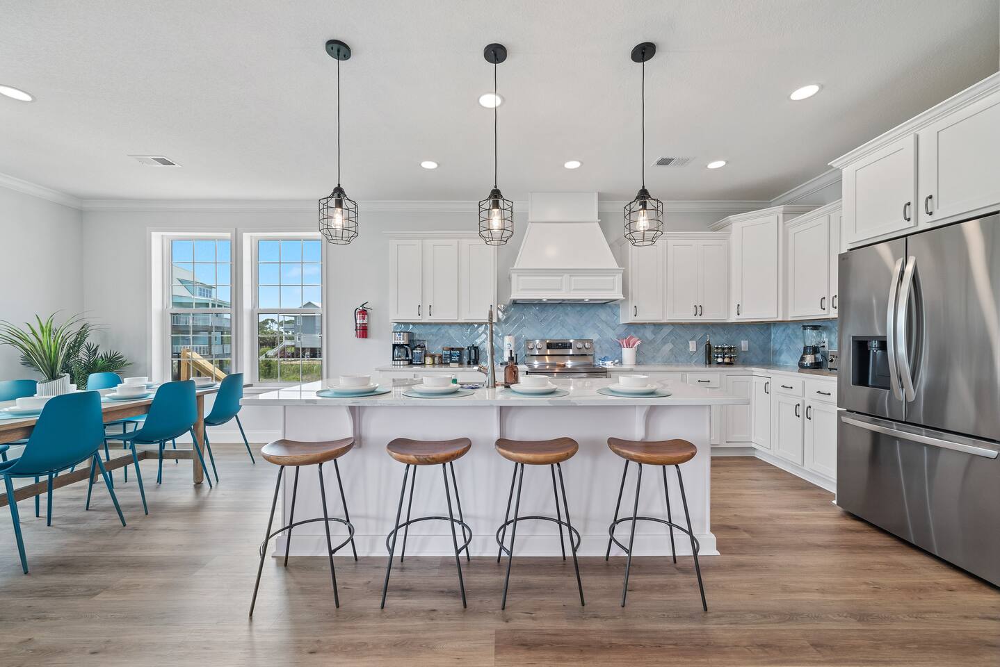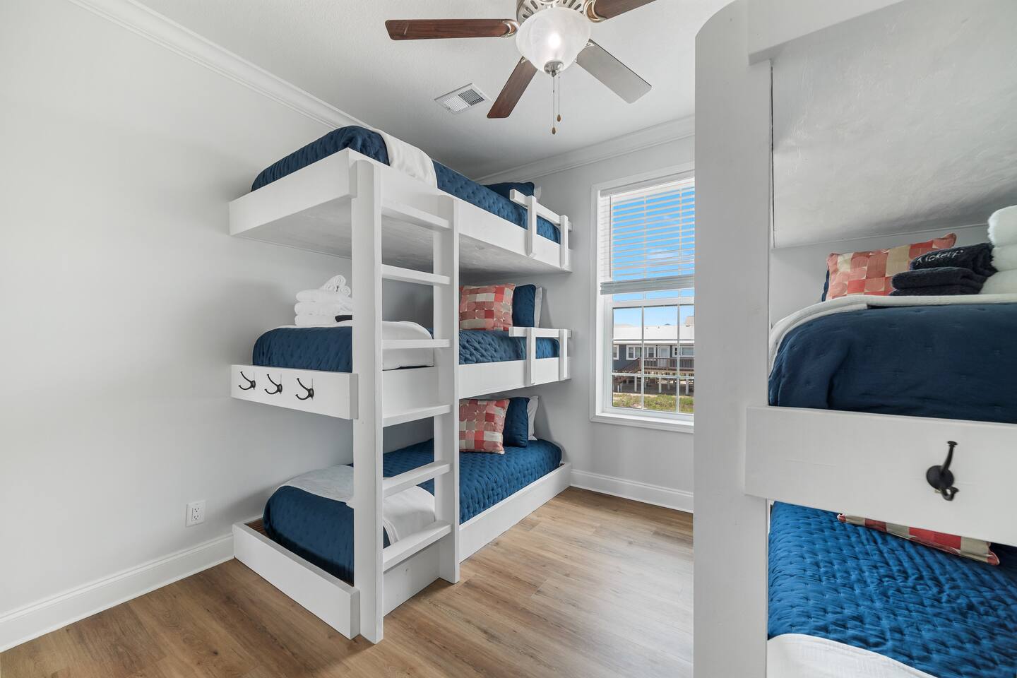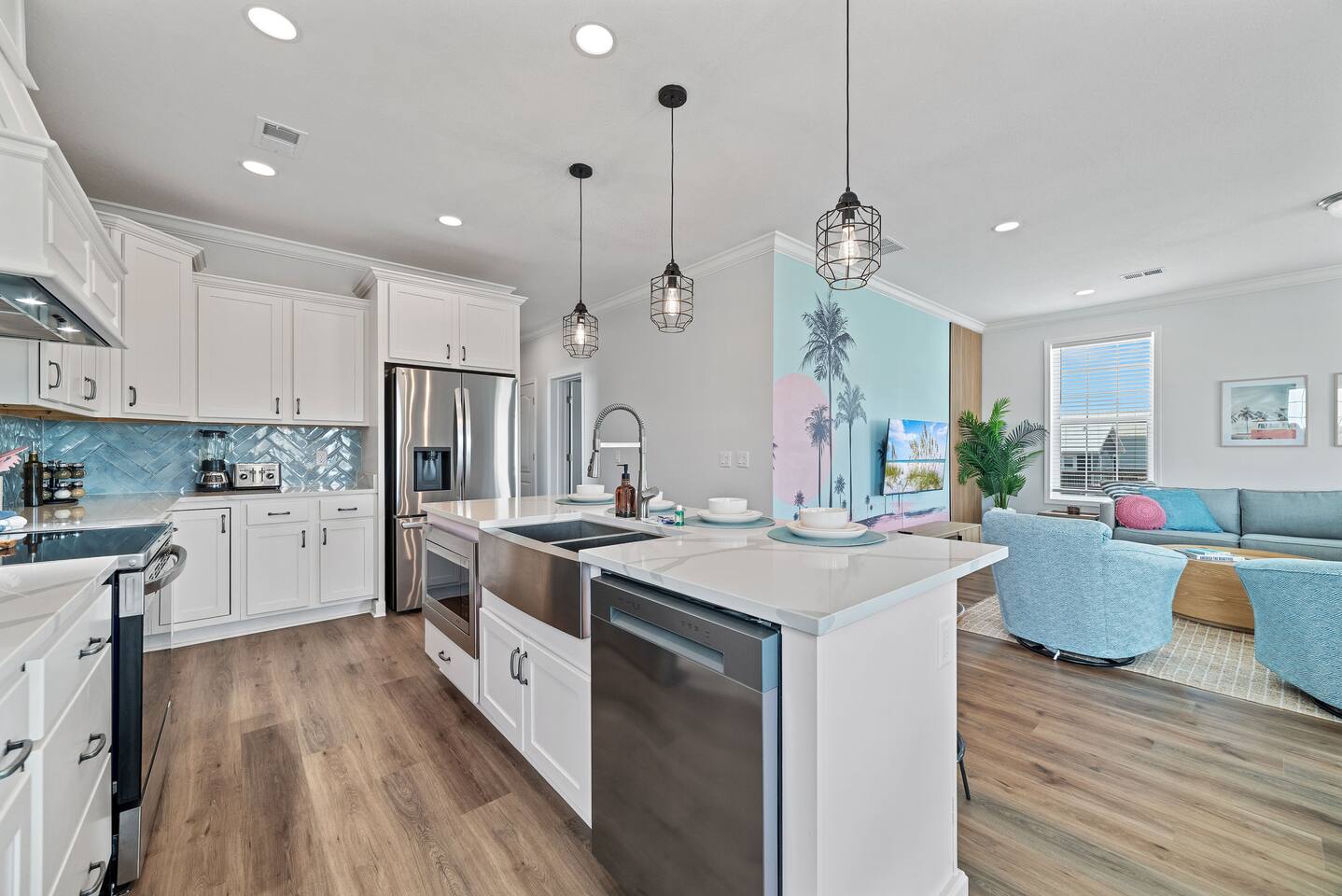 Picture yourself pulling up to Bright Waves Fort Morgan, greeted by the sight of a brand-new 4-bedroom beach house. The sky is painted in hues of orange and pink as the sun sets, and as you step inside, you're welcomed by cool, fresh air, luxurious furnishings, and the smell of the ocean breeze wafting from the nearby beach. After settling in, you head outside to your private heated pool. The water sparkles under the twilight, and the kids are already jumping in with pool toys. You relax by the fire pit, enjoying the peaceful evening air. The next day, it's all about the beach. Just a short walk away, Fort Morganās soft sand and gentle waves await. You spend hours splashing in the water, hunting for seashells, and making lasting memories with your loved ones, even your four-legged friend! As the day winds down, you return to the house, fire up the grill for a delicious meal, and settle in for an outdoor family movie night by the pool, projector ready, popcorn in hand. You sip your wine while the stars twinkle overheadāthis is your perfect beach escape. You can already imagine coming back, knowing Bright Waves Fort Morgan will always be a part of your familyās cherished moments. ⨠Property Highlights: - Brand-New 4 Bedroom, 3 Bath Home - Private Heated Pool (heat available upon request at additional cost) - Outdoor Movie Projector Setup - Pet-Friendly - Steps from the Beach - Outdoor Fire Pit & Grill - Pack ān Play, High Chair, and Kid-Friendly Kitchenware - Cozy Bunk Room for Kids - Smart TVs and High-Speed Wi-Fi - Beach and Pool Toys Provided, includes standup paddle boards (bring your lifejackets), a balloon tire beach wagon with fishing rod holders, pool toys and beach toys. - Spacious Living Areas for Family Gatherings - Luxury King-Sized Beds for Maximum Comfort - Located in Quiet Fort Morgan Area, Perfect for Family Getaways - Beach amenities Room by Room Highlights: Living Room: Sink into the plush sectional and unwind after a day of beach adventures. The living room features ample seating for everyone, along with a large smart TV for movie nights. Kitchen: Channel your inner chef in the fully equipped kitchen, complete with modern appliances and ample counter space. Whip up delicious meals to enjoy together at the dining table or alfresco on the patio. Our expandable dining table seats 6-8 guests with an additional 4 seats at our kitchen island. Bedrooms: Retreat to one of the four inviting bedrooms, each designed for maximum comfort. The primary and secondary suites boast luxurious king-sized beds and en-suite bathroom. While the additional bedroom offers cozy accommodations, yet large enough for yet another king bed. Bunk Room: Let the kids have their own space to play and sleep in the charming bunk room, complete with two triple bunk twin beds. Laundry Room: Conveniently located, the laundry room allows you to keep your beachwear fresh and clean throughout your stay. Outdoor Space: Step outside to your private oasis, where the sparkling pool awaits. Lounge on the sun deck or hammock, fire up the grill, or simply relax and soak up the sun. Venture beyond your oasis and discover the nearby attractions: - Fort Morgan State Historic Site (4 min) - Fort Morgan Marina (2 min) - World Class Golf at Kiva Dunes Public Golf Course (8 min) - The Village Lawn, food trucks (9 min) - Gulf Shores (25 min) - Waterville USA (25 min) - The Hangout (27 min) - Gulf Shores Sportsplex (32 min) Each room has been thoughtfully designed to offer comfort and functionality, ensuring your stay at Bright Waves Fort Morgan is nothing short of amazing! This home has everything you need for the perfect fall escapeāwhether youāre enjoying the nearby beach, relaxing by the pool, or having a family movie night under the stars. Book your stay today and make memories to last a lifetime!